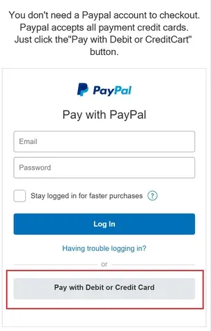 Or If you don’t want to pay by PayPal, only want to use the credit card, you can click the “Check Out”.